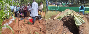 Land Planning- Capacity building on soil sampling and analysis in Uasin Gishu County (Left) and integrated soil fertility management-Composting