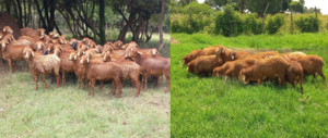 Photos of flock of Red Maasai Ewes and Rams respectively in Trans Mara Centre