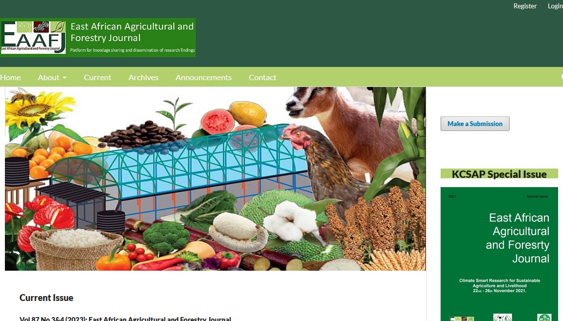 The East African Agricultural and Forestry Journal (E. Afr. agric. For. J.) was establishment in April 1908. The East African Agricultural and Forestry Journal (E. Afri. Agric. For. J.) has remained as a very important outlet for publishing findings of original research and other scholarly works in African.